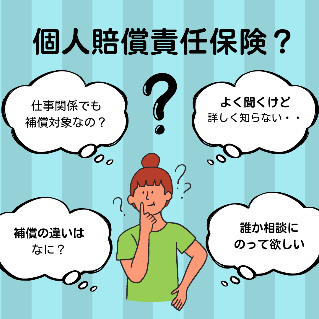 『今、入っている保険に個人賠償責任保険がついているが、これから新しく始める仕事でもつかえるのか教えてほしい』とお問合せをいただきました。